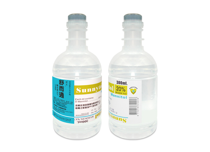 英文品名 :Sunnytol Infusion 20%研發代號 :ADB-310許可證字號 :衛署藥製字第033425號健保代碼 :AC33425266主成份 & 含量 :D-Mannitol 200 mg/mL劑型 :注射劑劑量 :300 mL包裝規格 :60 Bottle藥品類別 :處方用藥管制藥品 :否產地 :台灣藥理分類 :B05BC01適應症 :利尿、降顱內壓、腦水腫、促進毒物之尿中排除、腎小球過濾速率之測定用法用量 :滲透壓降壓作用:靜脈輸注,每公斤體重0.5g~2gm以15~25%溶液,點滴輸注30~60分鐘。